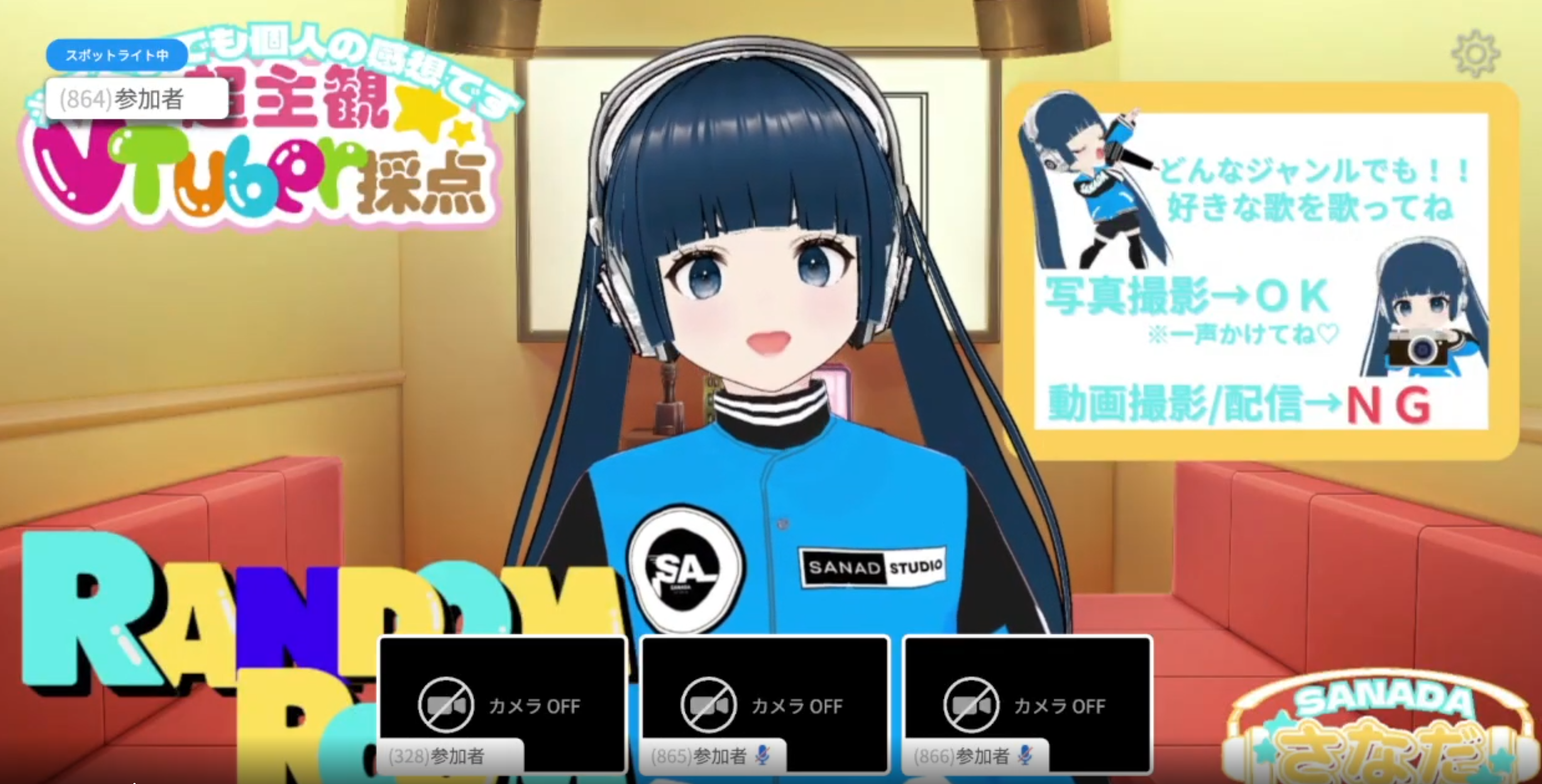 はい。さなだも最初は、JOYSOUNDのカラオケルームでマーダーミステリーゲームやクイズ大会の司会をしていました。「超主観VTuber採点」の募集を見たときは、VTuberじゃないし無理だと諦めていたんです。