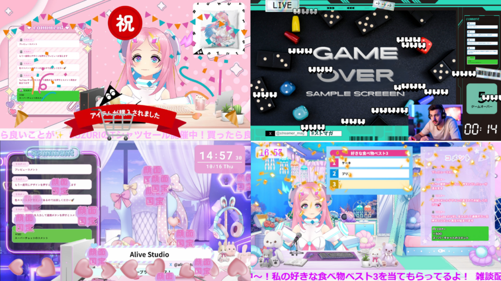 Alive Studioは、配信者が「話す・楽しむこと」に集中できる環境を支える配信画面デザインサービスです。