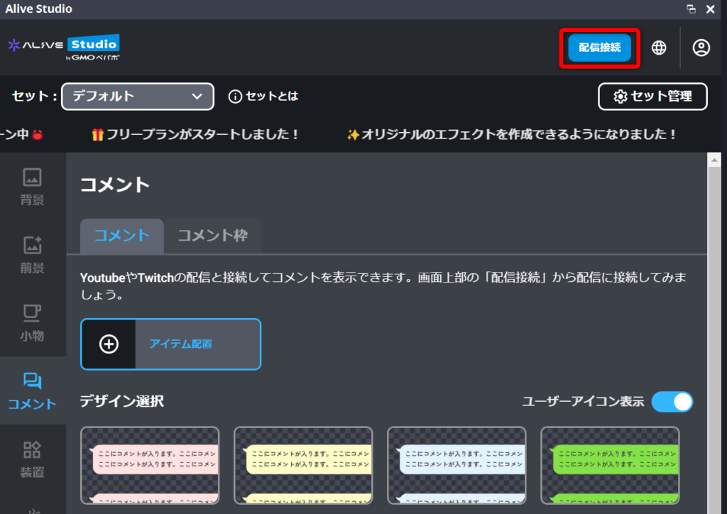 YouTube・Twitch連携!Alive Studioの配信接続で配信のコメント表示が簡単に!