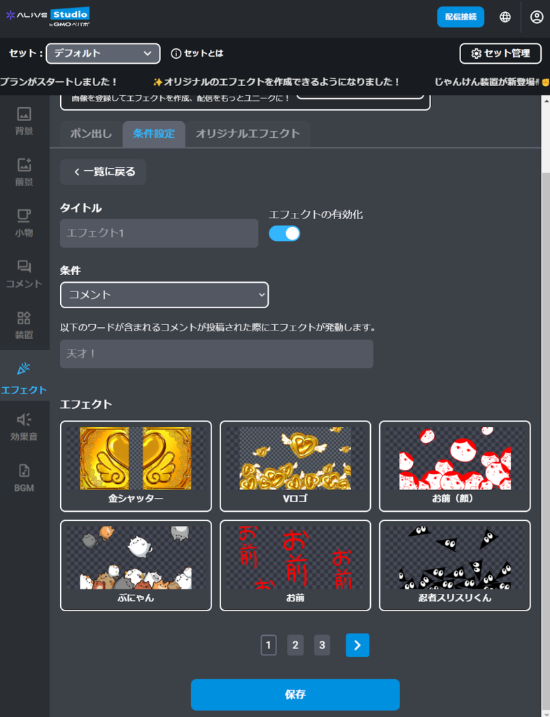 条件付きエフェクトは、視聴者のコメントが「演出のトリガー」になるのが最大の魅力です。