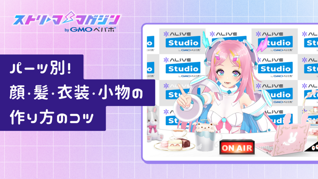ポイントは、可愛いだけで終わらせず、配信でイメージが伝わる形にすること。配信画面で小さく表示される場面もあるため、印象が残る要素をパーツごとに押さえていきましょう。