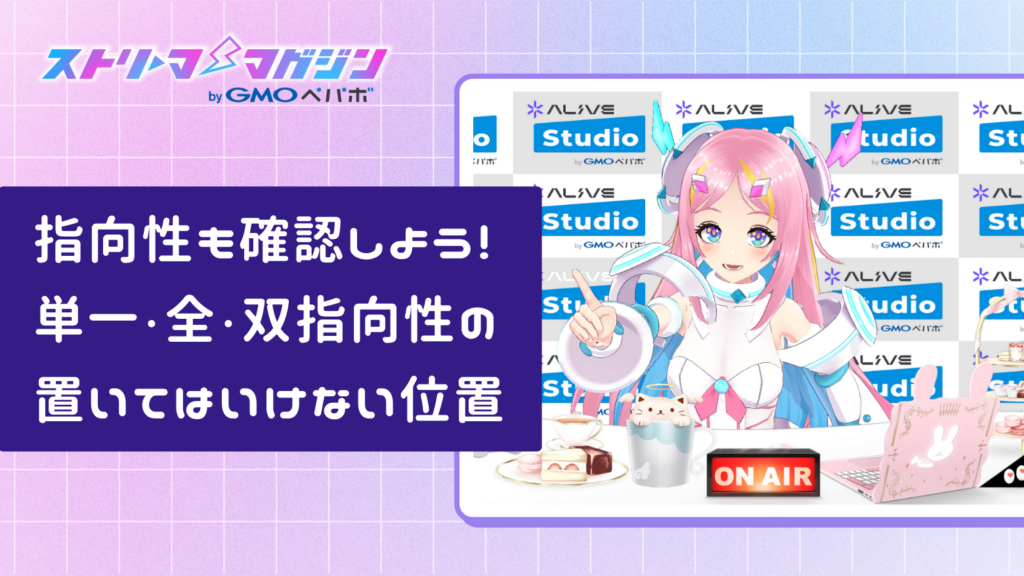 指向性とは、マイクがどの方向の音を拾いやすいかという性質のこと。ここを間違えてしまうと、声を拾わせたいのにキーボードやファンの音なども拾ってしまっていたという状態になりかねません。