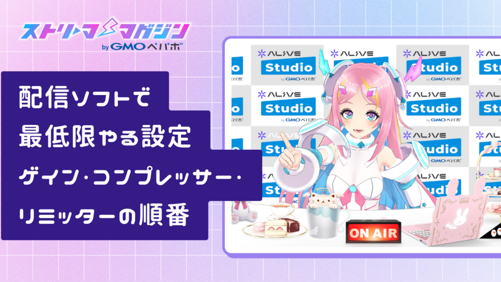 テンプレはあくまで型なので、最後は自分の声と環境に合わせて微調整してください。次の章では、配信ソフト側で最低限やっておきたい設定(ゲイン・コンプレッサー・リミッター)を、失敗しにくい順番で紹介します。