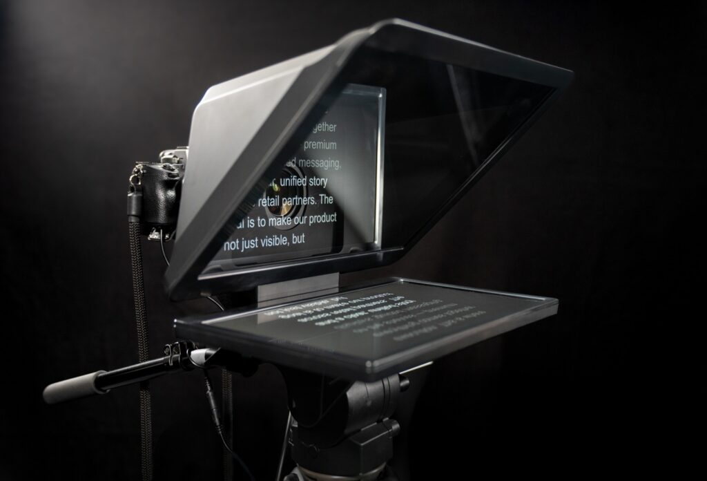 プロンプターは、視線を動かさずに情報を読むための装置です。