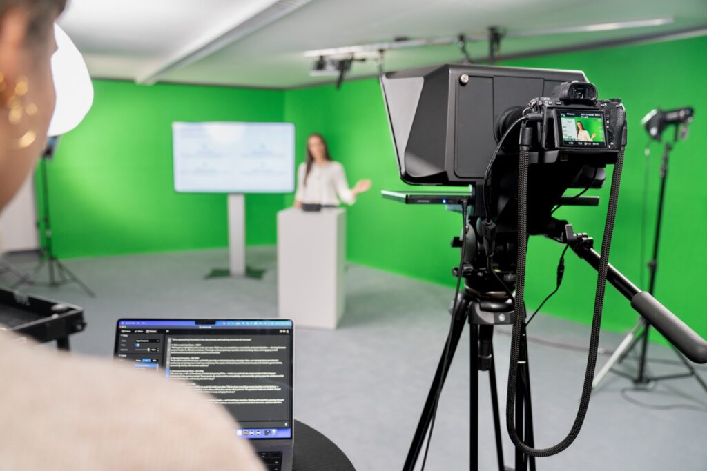 部屋やデスクのサイズが小さく、プロンプターを設置できるほどの奥行きを確保しにくい。