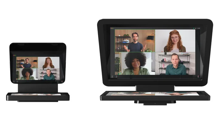 例えばZoom会議で相手の顔をプロンプターに表示すれば、相手と目を合わせながら会話できますし、資料を映せば、下を向かずにプレゼンすることも可能です。