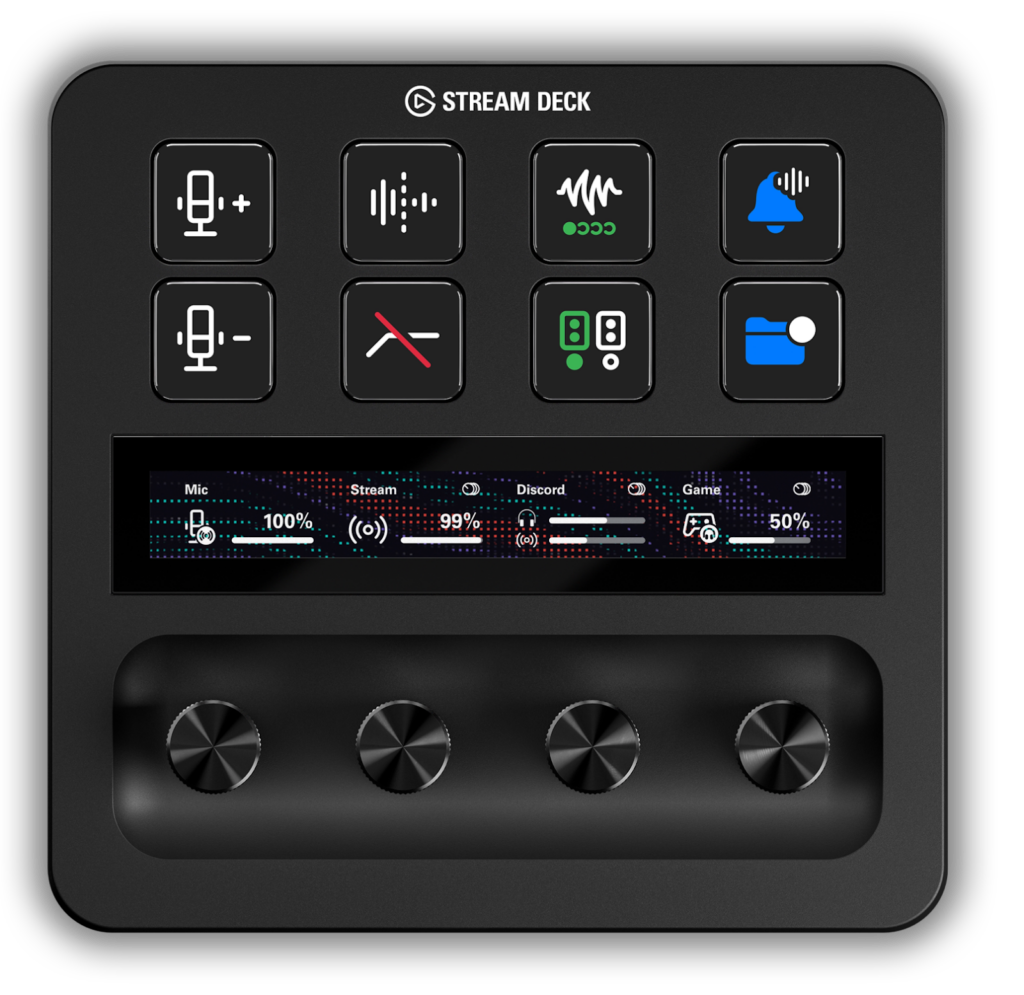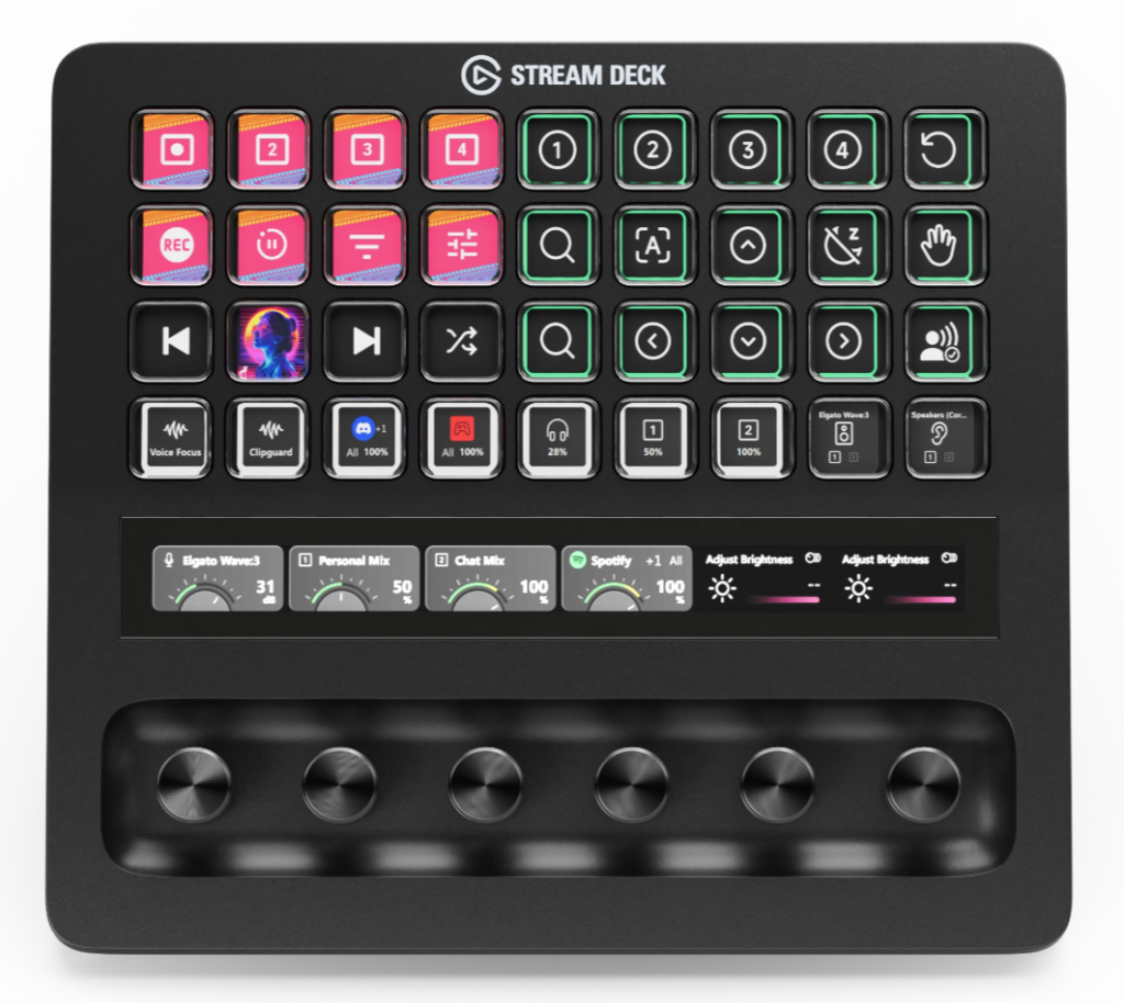 操作系の本命がStream Deck + XLです。OBSのシーン切り替え、Discord、照明、BGMといった操作を1画面に並べられるので、ページを切り替えながら探す手間がなくなります。