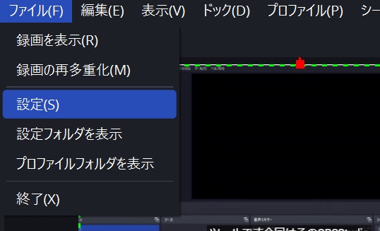 まず、OBSの画面左上にある「ファイル」から「設定」を選択してください。