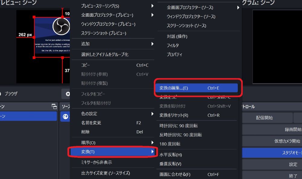 まず、プレビューに表示されている画面を右クリックしてください。次に、「変換」を押し「変換の編集」をクリックしましょう。