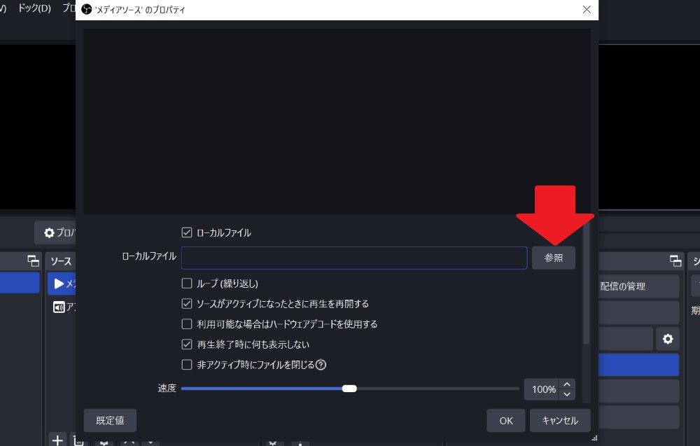 動画ファイルを選択した後、メディアソースを設定しましょう。