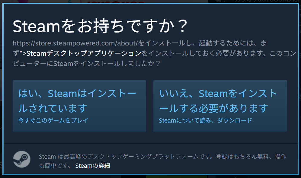 3.Steamをインストール済みの場合は「はい、Steamはインストールされています」を、Steamがインストールされていない場合は「いいえ、Steamをインストールする必要があります」を選択