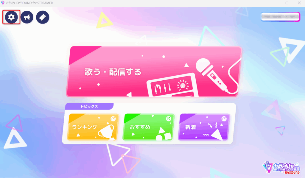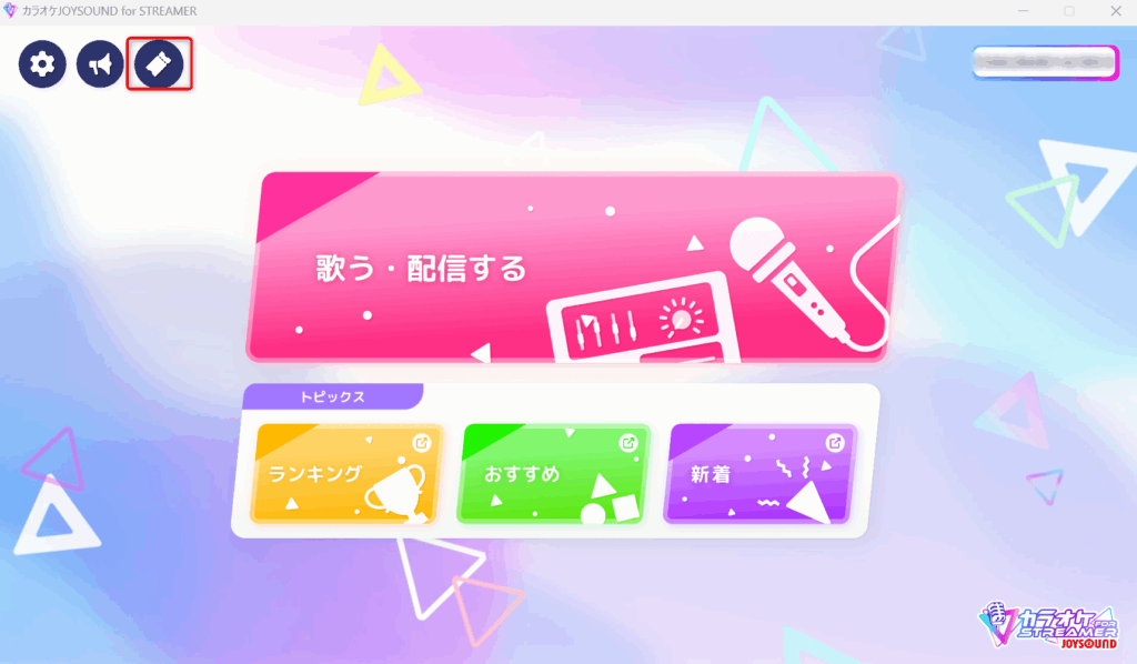 以降は、アプリ内から楽曲を検索したり、歌枠配信を行うための設定を行いましょう。