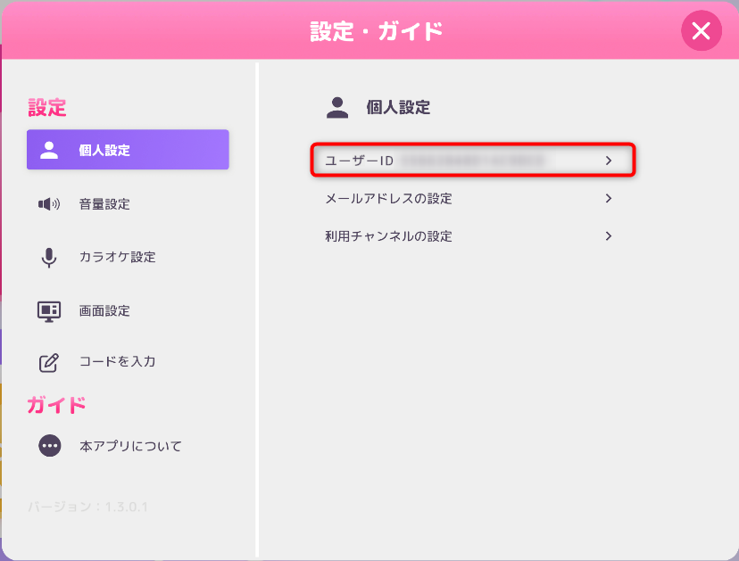2.「個人設定」を開き、「ユーザーID」をクリック