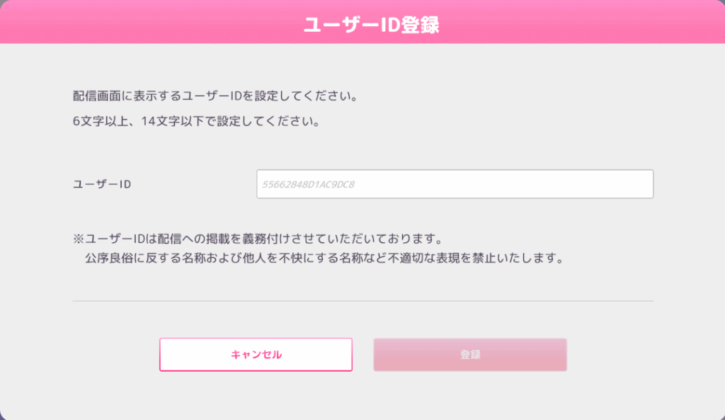 3.希望のユーザーIDを入力して、「登録」ボタンをクリック