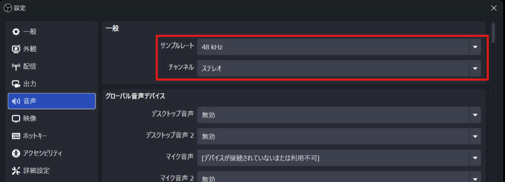 高音質で配信するための設定については「OBSで音声を設定する方法!高音質で配信できるおすすめ設定を紹介」でも詳しく解説しています。気になる方はこちらも参照ください。