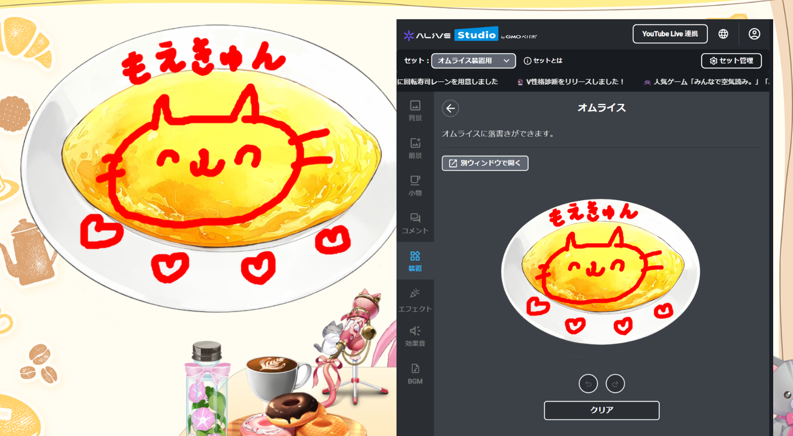 エフェクト・時計・テロップなど配信画面を彩る機能が勢揃い!