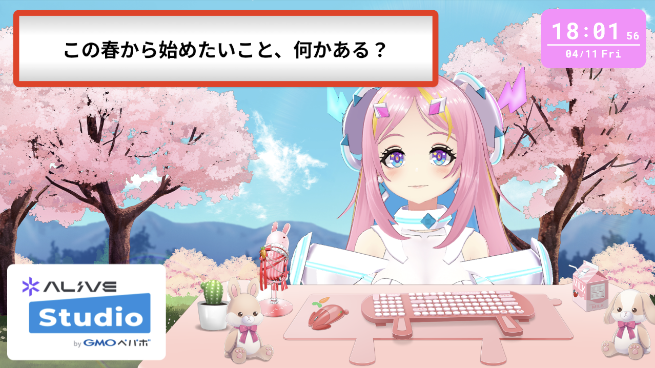 Alive Studio byGMOペパボはOBS上で素材を選ぶだけで、かんたんに配信画面が作成できるサービスです。豊富な画像素材や効果音・BGMのほか、お題ルーレット、時計、テロップなど、配信をもっと盛り上げる機能もたっぷりそろっています🎮あなたの配信を、もっと楽しく、自分らしく演出してみてね!