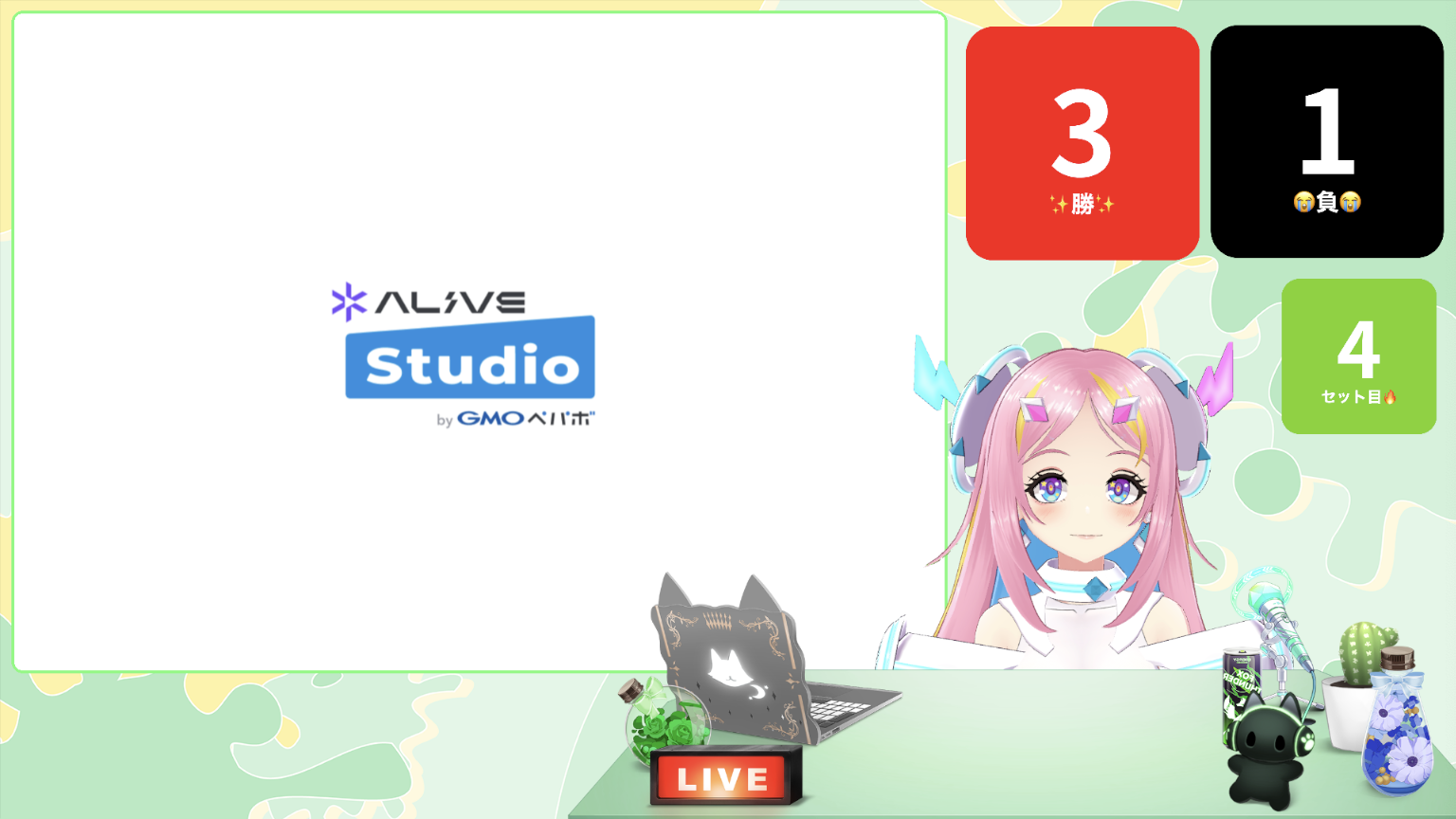 Alive Studio byGMOペパボはOBS上で素材を選ぶだけで、かんたんに配信画面が作成できるサービスです。豊富な画像素材や効果音・BGMのほか、お題ルーレット、時計、テロップなど、配信をもっと盛り上げる機能もたっぷりそろっています🎮あなたの配信を、もっと楽しく、自分らしく演出してみてね!