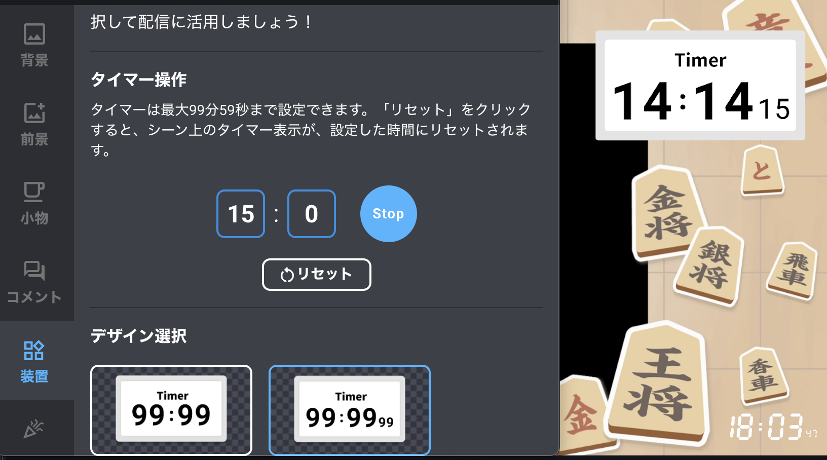 シンプルで見やすいカウントダウンタイマー! 好きな時間を設定してワンクリックでスタートできます。 複数のデザインバリエーションから配信画面に合ったものを選べます。 制限時間付き企画・作業集中タイムなど、 時間を区切ることで配信にメリハリが生まれます。